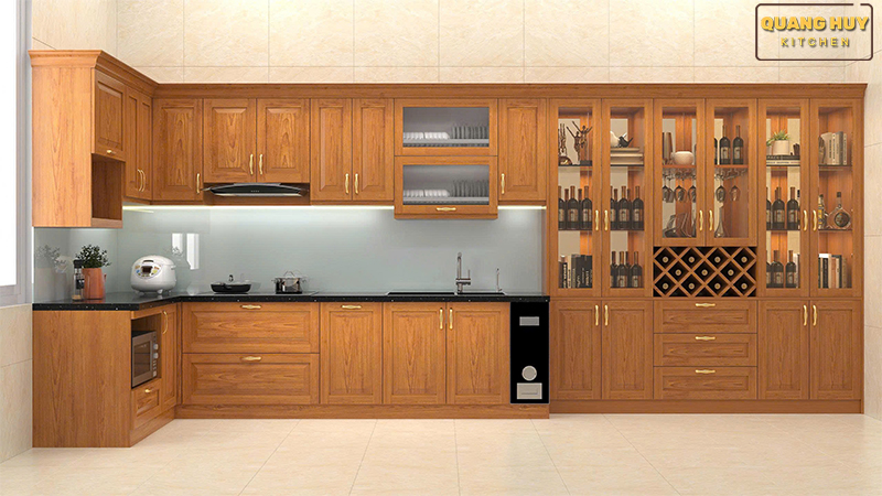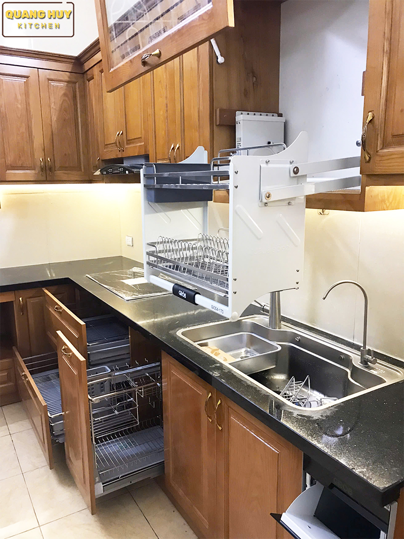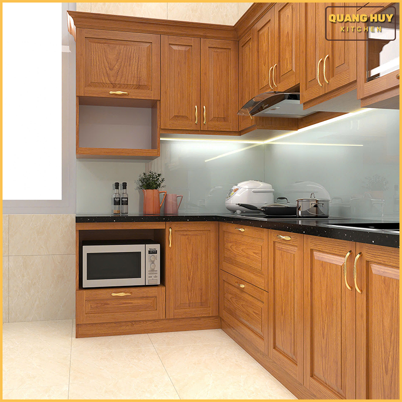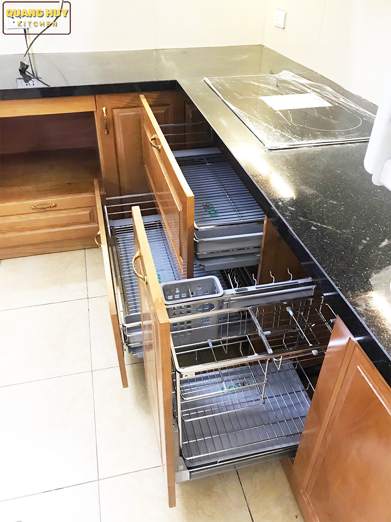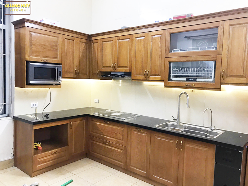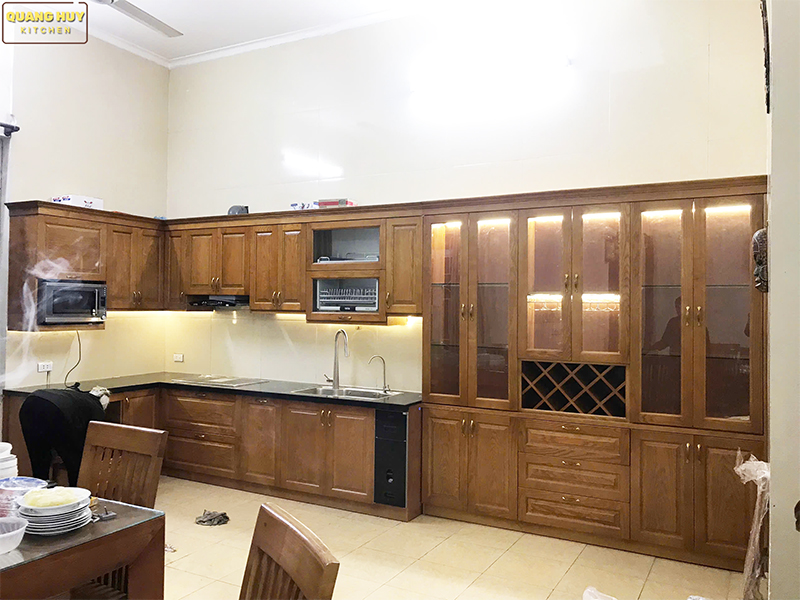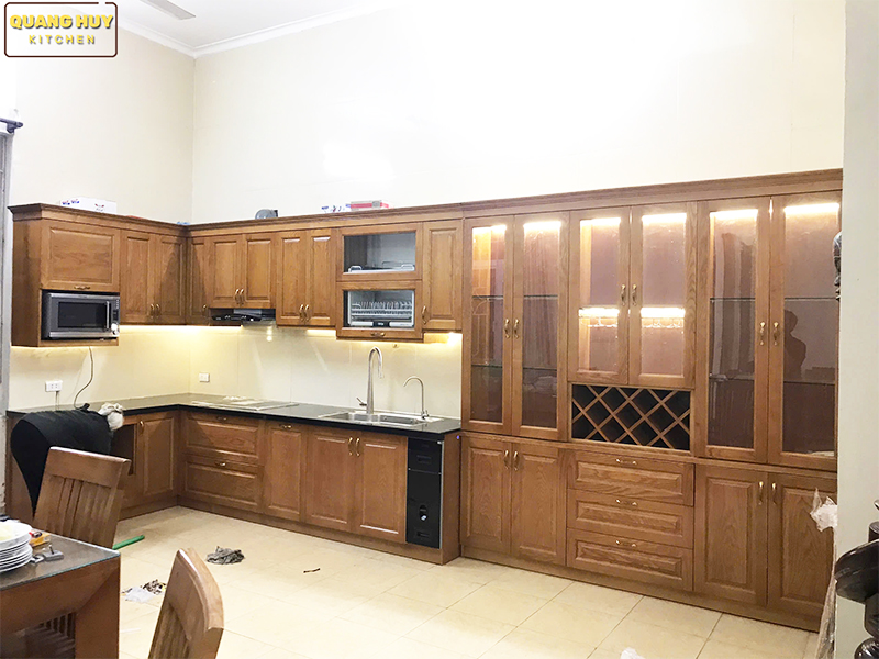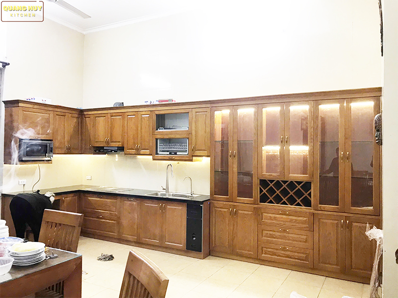 Tủ bếp gỗ sồi Nga nhà Chị Tuyết Long Biên