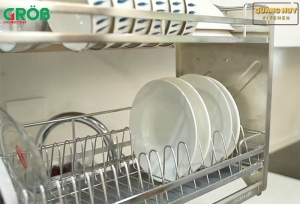 Giá bát nâng hạ grob 304 này được thiết kế khoa học với 2 tầng, 1 tầng úp đĩa ở dưới và 1 tầng úp bát. Điểm khác biệt nữa là các nan sẽ thiết kế rộng và hẹp khác nhau để phù hợp với nhiều loại đĩa khác nhau. Chiều cao của nan cũng cao hơn so với giá úp bát khác giúp giữ bát đĩa được chắc chắn hơn trong quá trình kéo thả