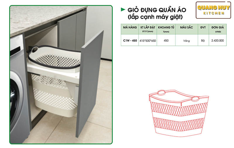 Bảng kích thước giỏ đựng quần áo lắp cạnh máy giặt