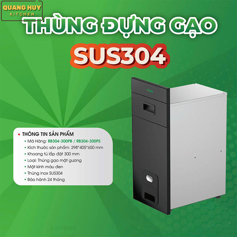 Hình ảnh thông tin thùng đựng gạo inox tủ bếp